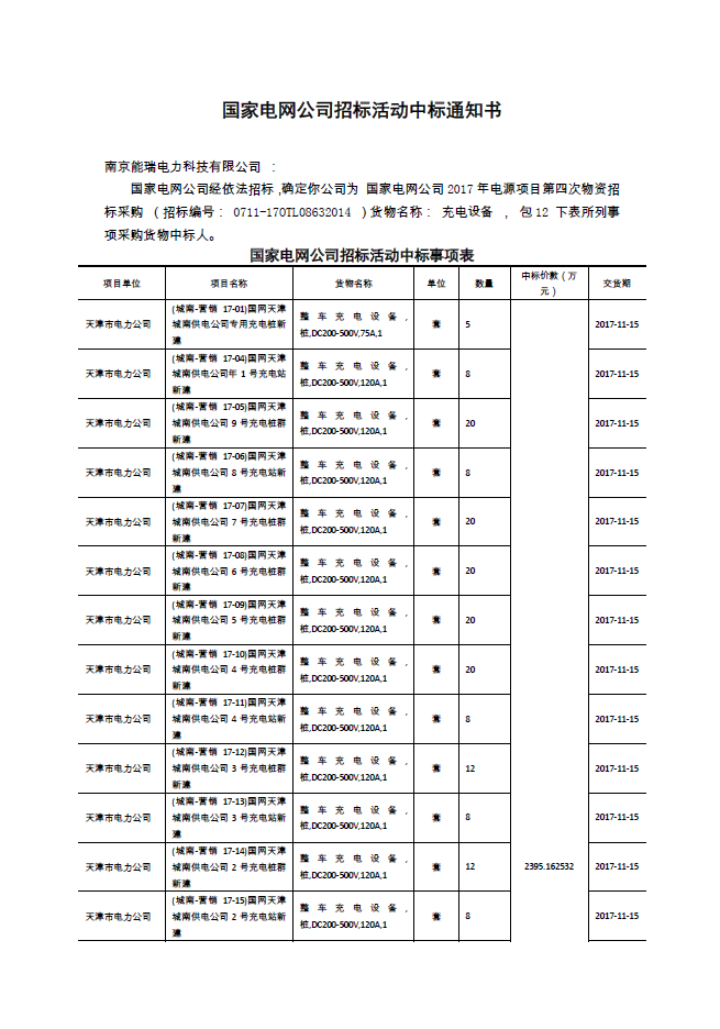 關(guān)于南京能瑞收到中標(biāo)通知書的公告